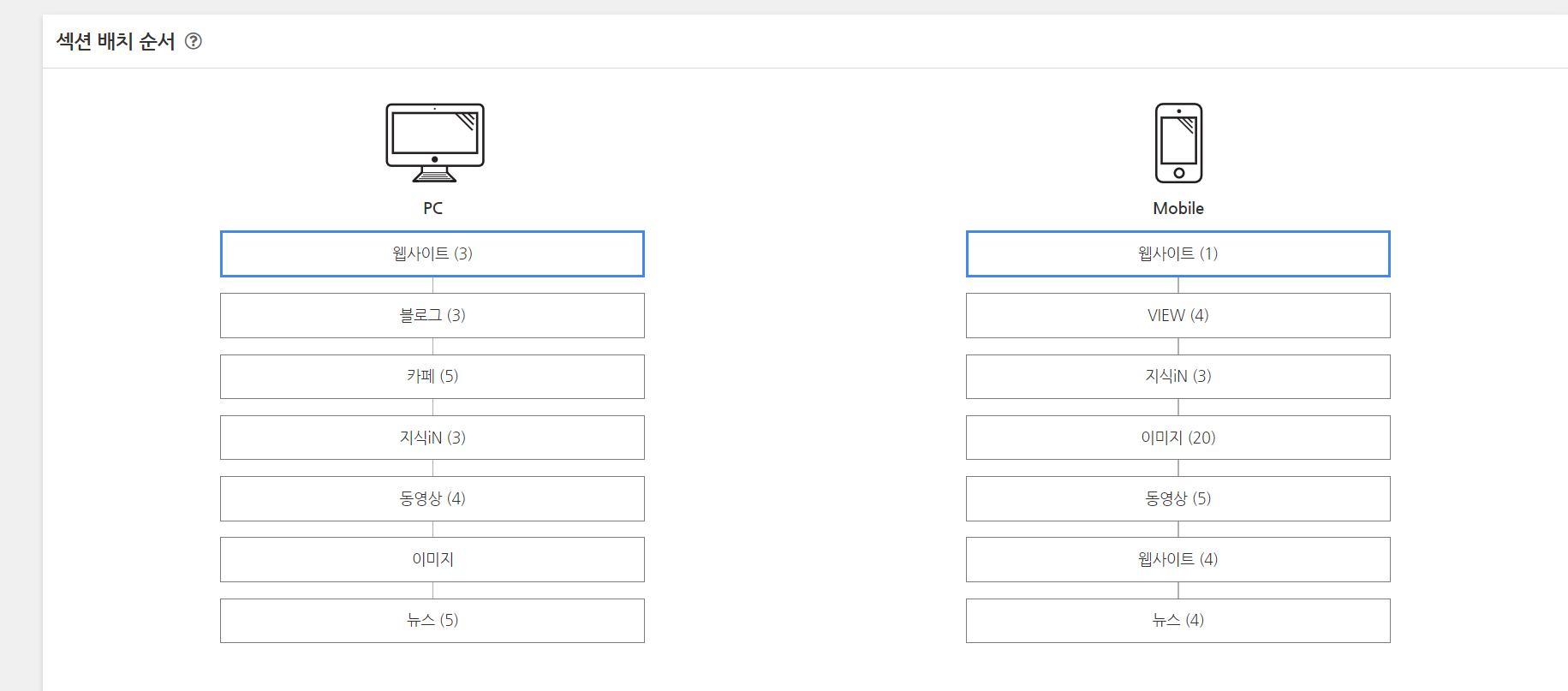 - 추천 백만개★ 키워드 검색시 어떤 컨텐츠가 상위 노출 되는지 컨텐츠 유형별 순서를 알 수 있다.