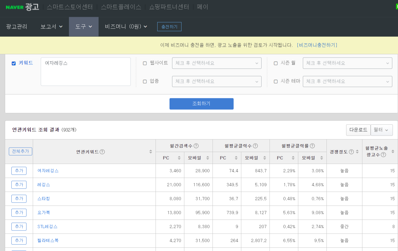 - 네이버 광고에 가입해야 이용할 수 있다.