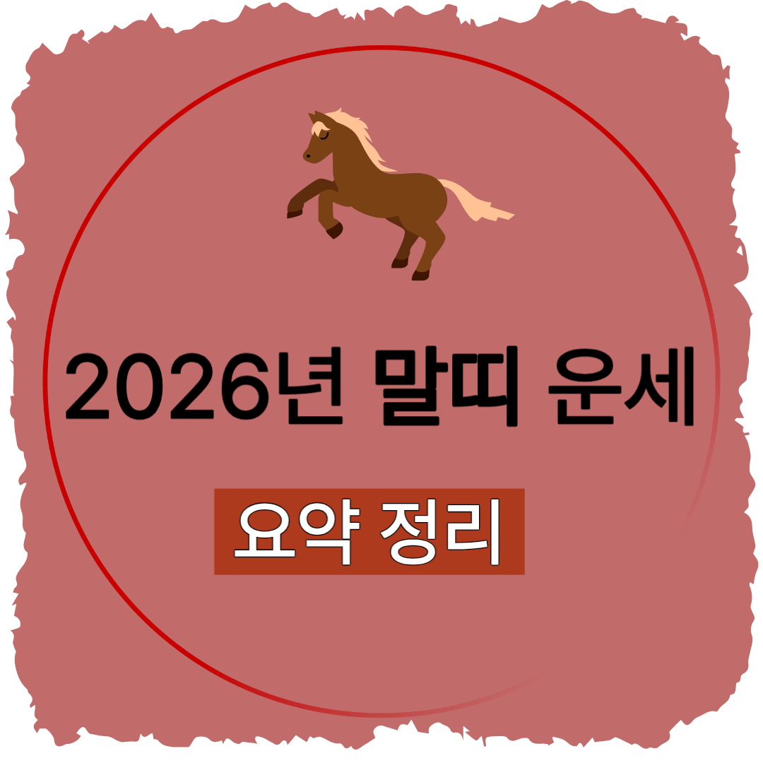 2026년 말띠 운세 요약 정리 2002년생 (24세) / 1990년생 (36세)1978년생 (48세) / 1966년생 (60세)※ 모두 자형(自刑)의 해로 분류되며말띠에게 말의 해는 스스로 부딪히는 운세입니다. 즉 ‘자기와의 싸움’ 또는 ‘자기 얽힘’이 큰 이슈가 되는 해.따라서 내면관리와 감정 조율이 매우 중요합니다. 생월별로 자세히 보기 (1~12월생 말띠) '운세+α/말띠' 카테고리의 글 목록간결하게 살되, 가끔씩은 깊이 생각한다.imworld.tistory.com 말띠가 2026년에 감정관리를 잘 해야하는 이유 2026년 운세 말띠가 가장 조심해야 할 것 (자형自刑의 해)자형 해란?2026년은 말띠에게 ‘자형(自刑)의 해’라고 불립니다.‘자형’이란 말 그대로 풀이하면 ‘스스로를 형벌한다’는 ..
